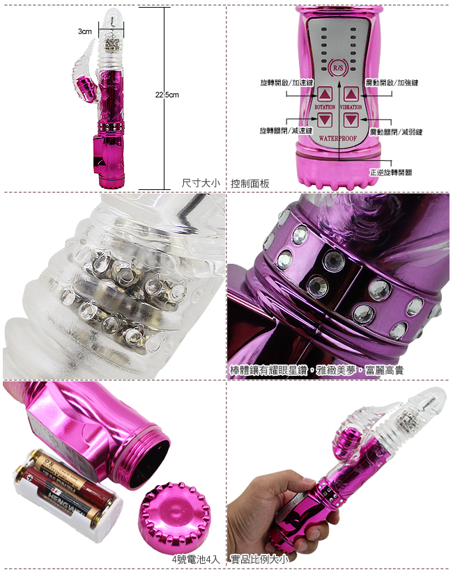 最新強力電動轉珠按摩棒,可同時震動陰道、陰核,震動力強勁!耐用、耐操,同時可微調震動,遠遠超越了男性陽具所能發揮的體能極限,強烈的戳幹力,幾乎讓人無法一手掌握,再怎麼強烈的燎原慾火,也會被它所撲滅夷平。