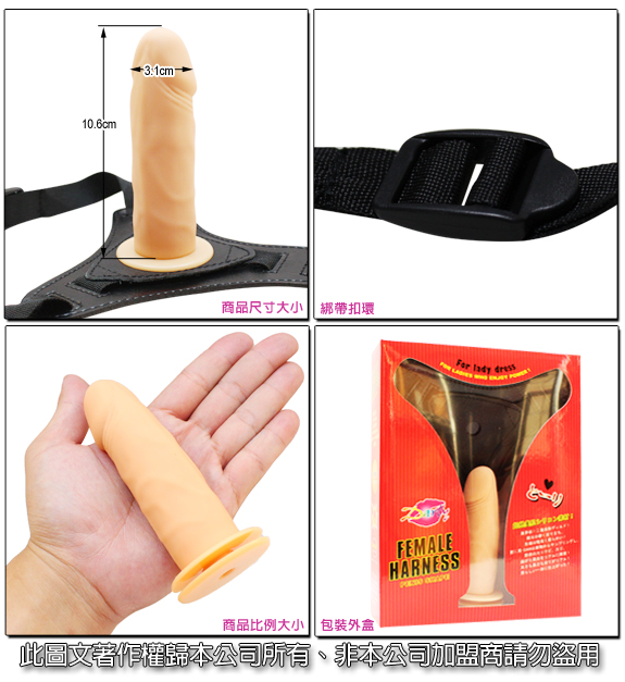 女用穿載式按摩棒-老二型(含穿戴褲)。外皮材質滑細,質感好不會傷害皮膚,使妳的陰道壁能得到全方位的刺激按摩。 穿戴在跨下,可隨身體自然韻律抽動,令對方進入高潮!雙雙墜入無盡美妙境界!